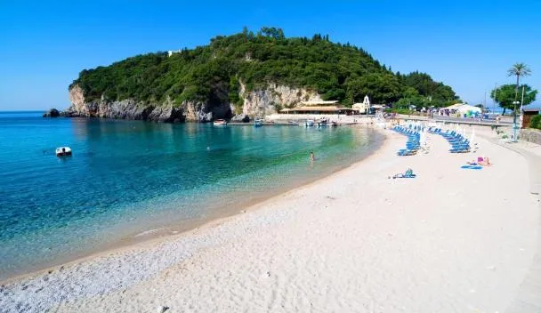 Overlooking the Ionian Sea, a lagoon and the famous Mouse Island, this holiday resort is close to Corfu's town centre.