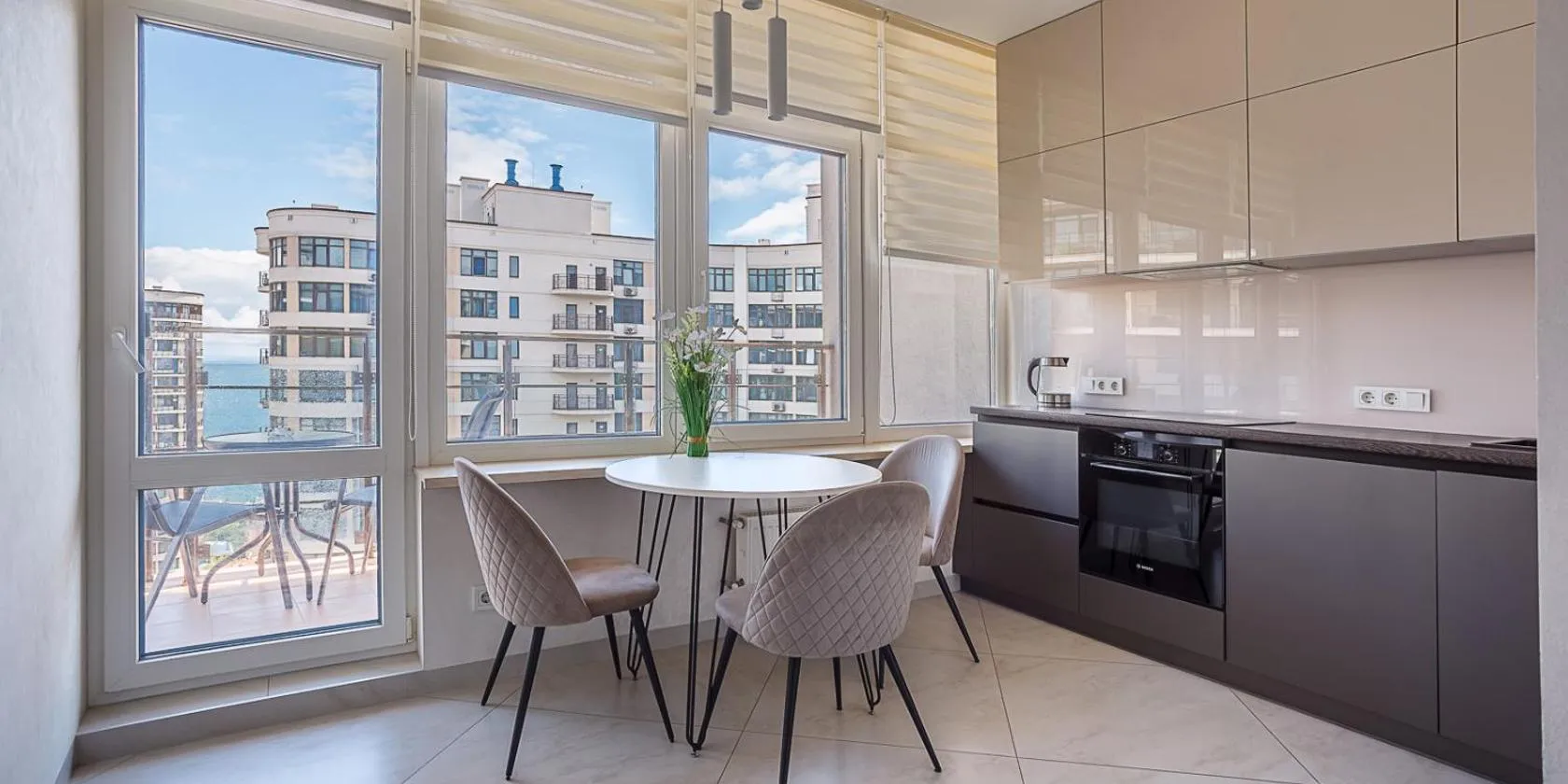 Это идеальный вариант для выбора жилья для отдыха! 5 минут до моря, отличные апартаменты с видом на море, отличные условия для проживания! Нам с женой очень понравилось здесь и можем смело рекомендовать данные апартаменты, так как соотношение цена - качество просто идеальное!