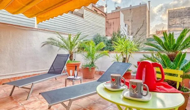 Private Double Room in a Shared Penthouse with Patios se află în Sant Adria de Besos, la mai puțin de 1 km de Plaja del Litoral și la 6,5 km de Sagrada Familia, și include WiFi gratuit, o grădină, un...