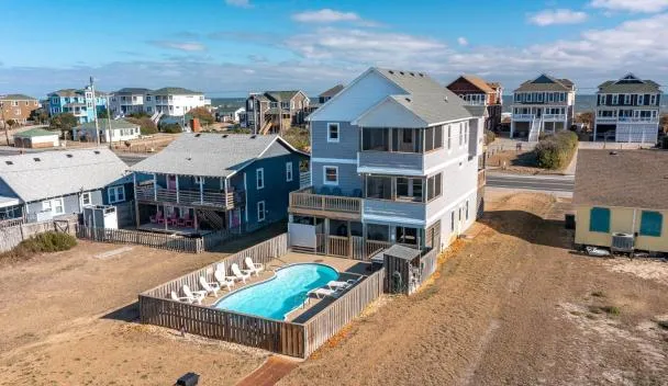 Located next to the Nags Head Pier, this oceanfront property features an outdoor pool and direct beach access.
