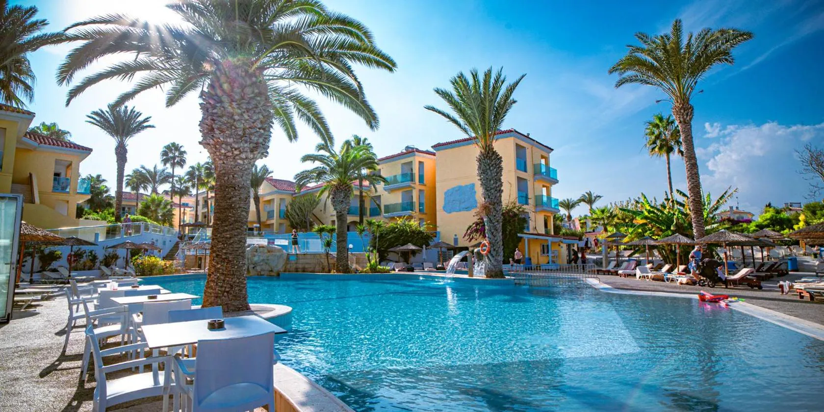 Hotel ini dikelilingi oleh taman-taman yang menghijau dan terletak di sebuah pantai di Paralimni.